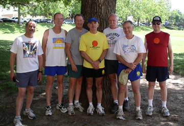 (left: Doug, Dennis, Ed, Dick, Wes, EKM); Dick's last run with the MadDogs; June 30, 2008; (right: Dennis, Ed, EKM, Dick,Wes, Doug, Mike) |